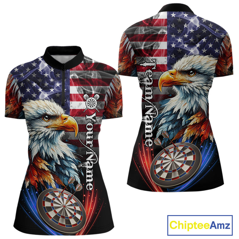 American Flag Smoke Eagle Darts Shirt For Women Custom Patriotic Darts Jersey Team Polo, 1/4 Zip TDM5256