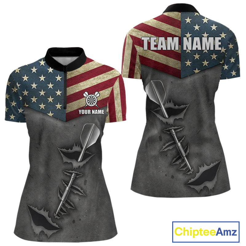 Personalized American Flag Steel Tip Dart Polo & 1/4 Zip For Women Custom Patriotic Darts Jersey TDM5260