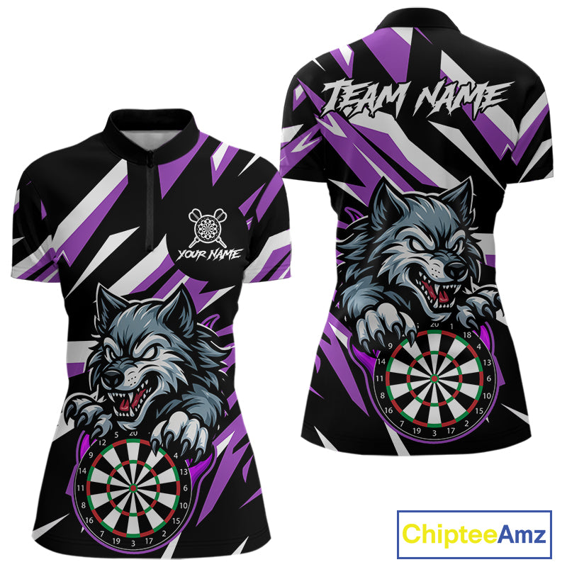 Personalized Wolf Darts Polo & Quarter Zip Custom Darts Shirt For Women, Darts Jersey |Purple TDM5319