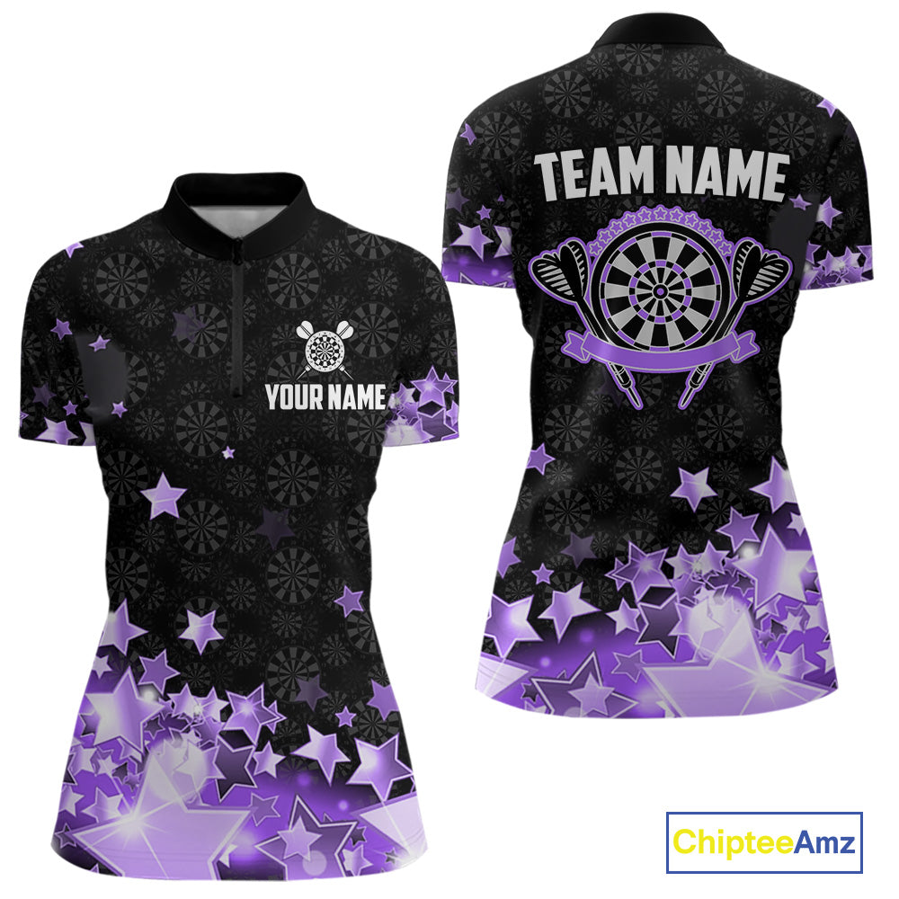 Funny Custom Dart Shirt For Women, Black And Purple Glowing Star Pattern Darts Polo & Quarter Zip TDM5326