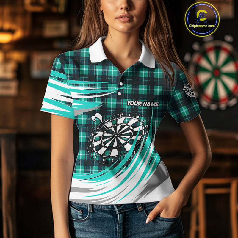 Personalized Turquoise Dartboard Plaid Womens Darts Shirt Custom Darts Jersey Team Polo & 1/4 Zip TDM5328