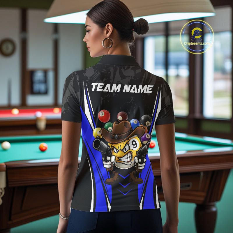Funny 8 Ball & 9 Ball Billiard Shirt For Women Custom Black And Blue Pool Team Shirt, Billiard Jersey TDM5409
