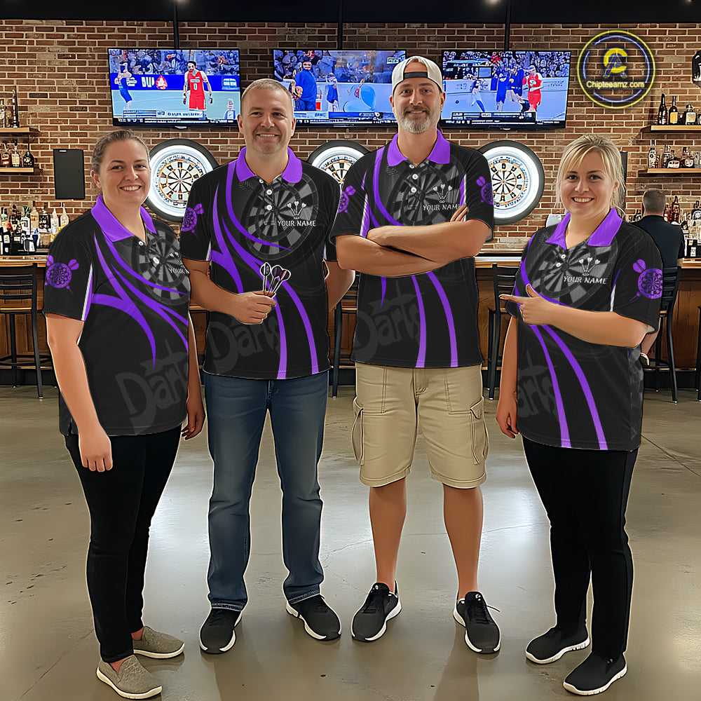 Black And Purple Darts Jersey For Women Custom Team Polo & Quarter Zip Darts Shirt Uniform TDM5412