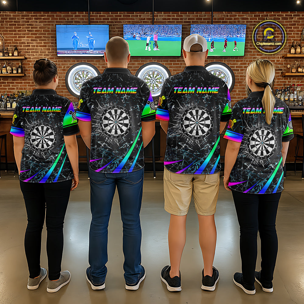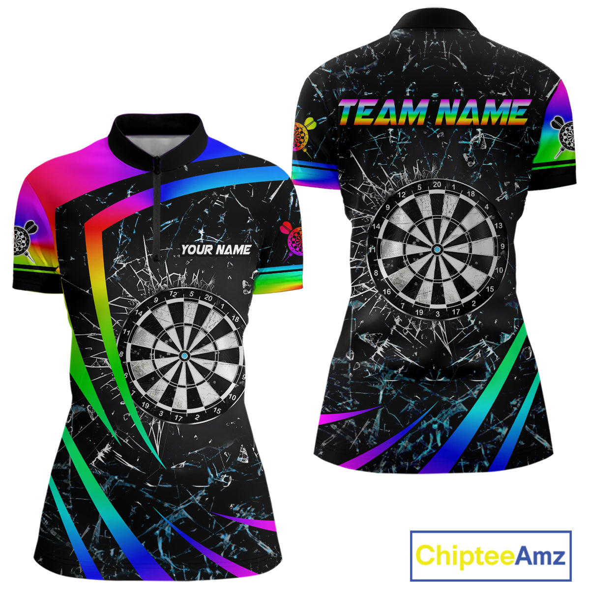 Funny Rainbow Colorful Glass Break Darts Shirt For Women Custom Darts Jersey Team Polo & 1/4 Zip TDM5414
