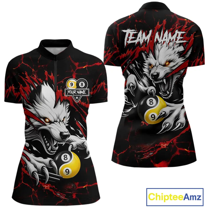 Personalized Wolf Yin-Yang 8 & 9 Ball Billiard Shirt For Women, Billiard Team Jersey Polo & 1/4 Zip TDM5470