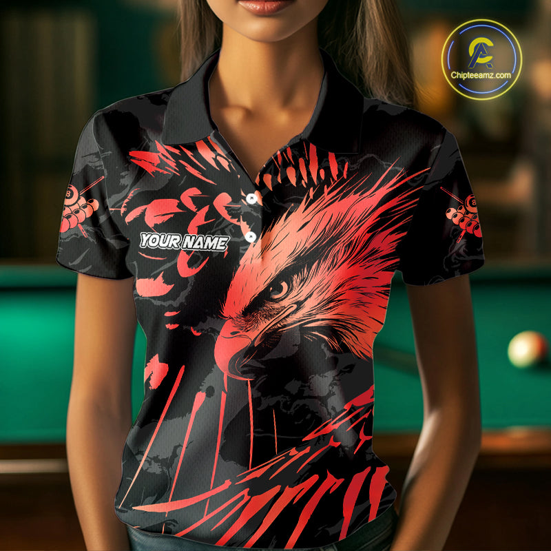 Custom Red And Black 8 Ball Pool Eagle Paint Billiard Shirts For Women Team League Billiard Jersey TDM5474
