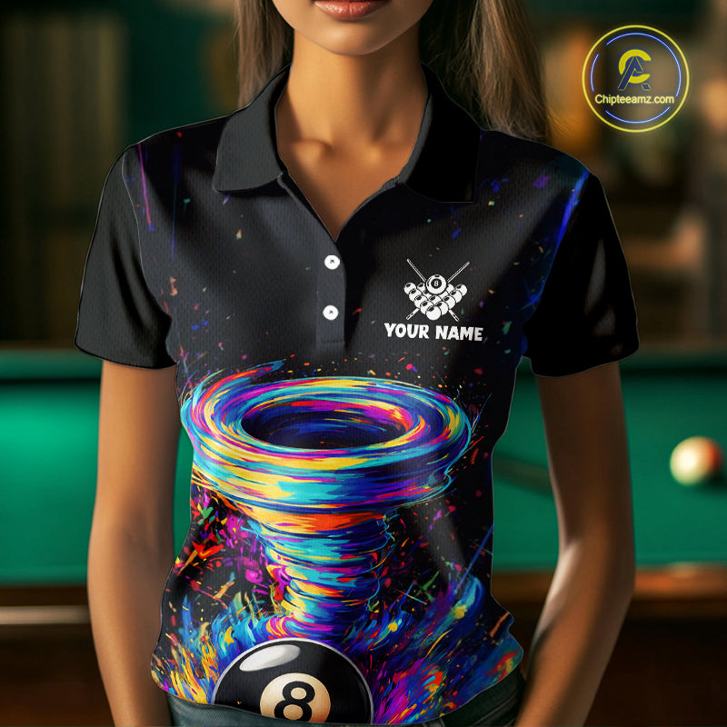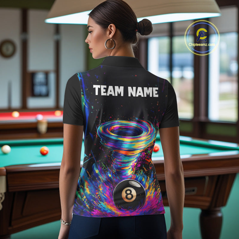 Funny 8 Ball Pool Colorful Splash Tornado Billiard Shirt For Women Custom Billiard Team Jersey TDM5575