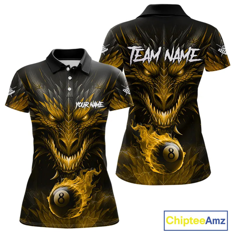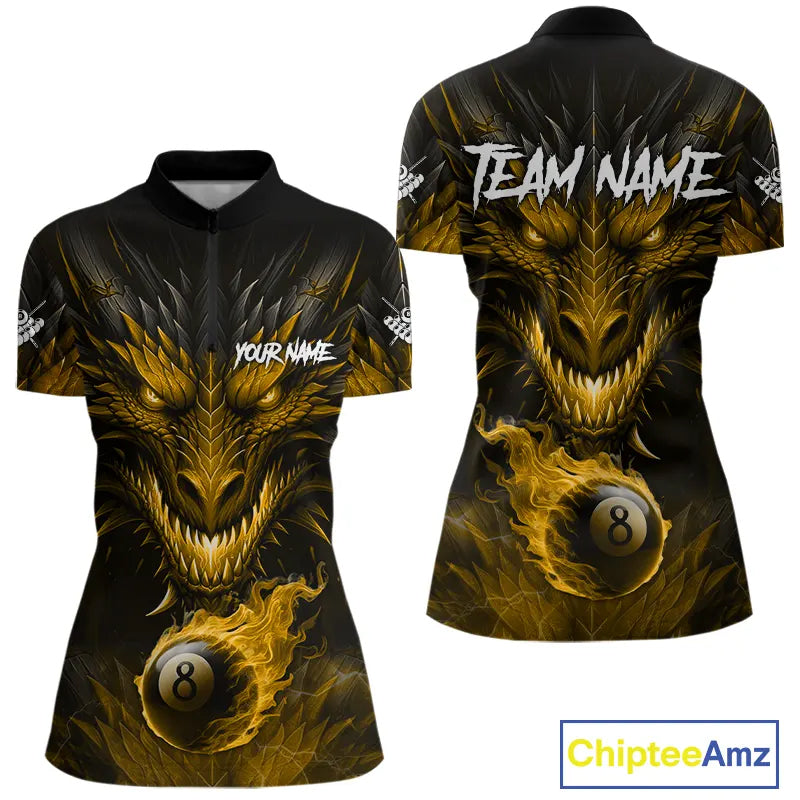 Personalized Dragon 8 Ball Fire Flame 3D Billiard Shirt For Women, Billiard League Team Jersey|Yellow TDM5595