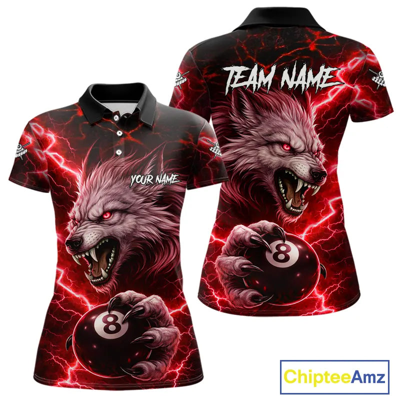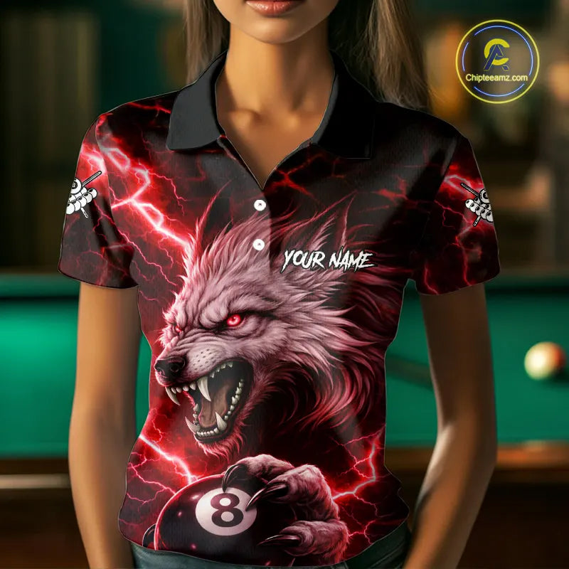 Red 8 Ball Pool Wolf Lightning Billiard Shirt For Women Custom Billiard Team Jersey Polo & 1/4 Zip TDM5614