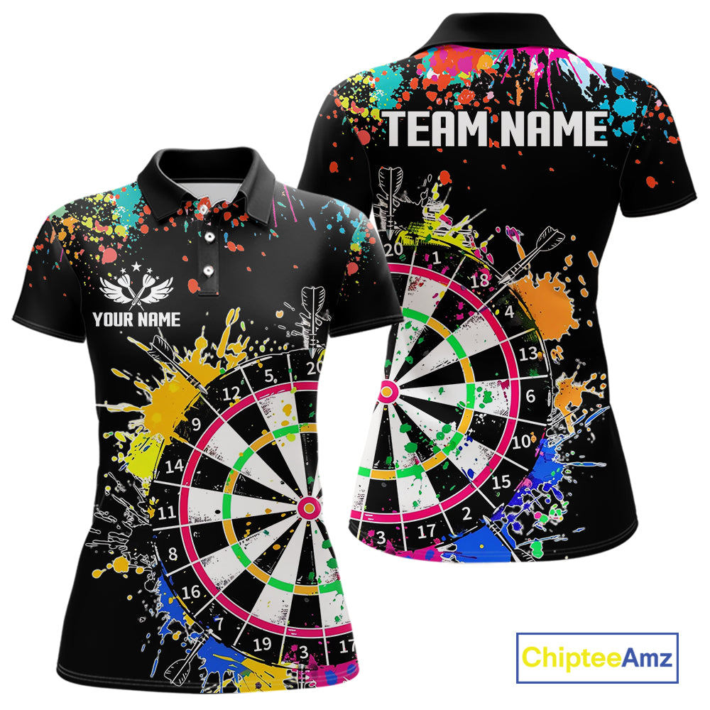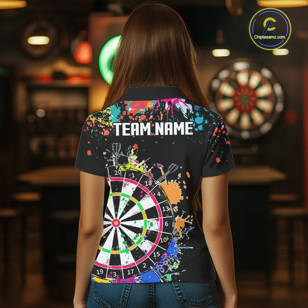 Funny Dartboard Colorful Paint Dart Shirt For Women Custom Darts Team Jersey Polo & 1/4 Zip |Black TDM5624