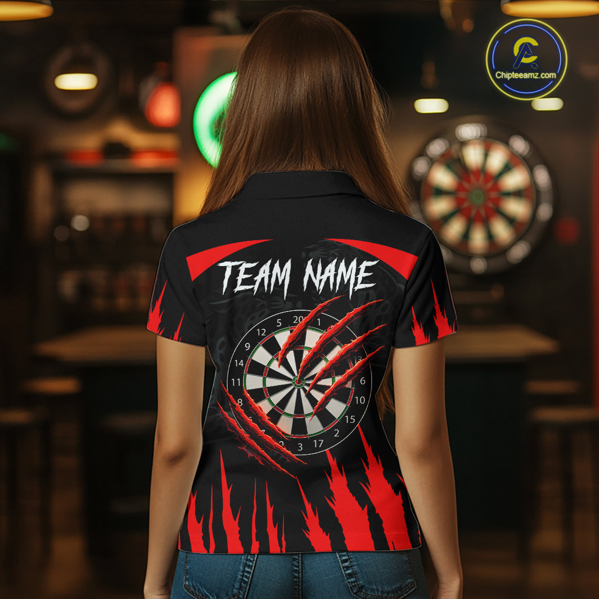 Black And Red Custom Leopard Darts Shirt For Women, Darts Team Jersey Polo & Quarter Zip TDM5625