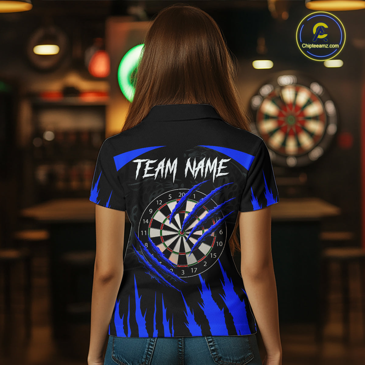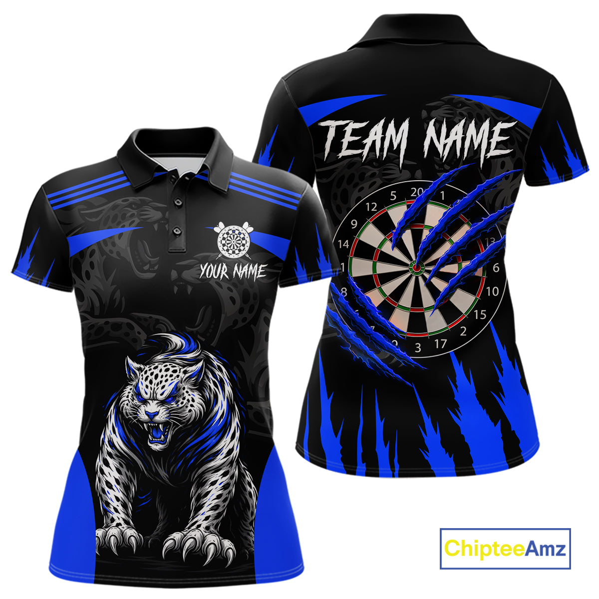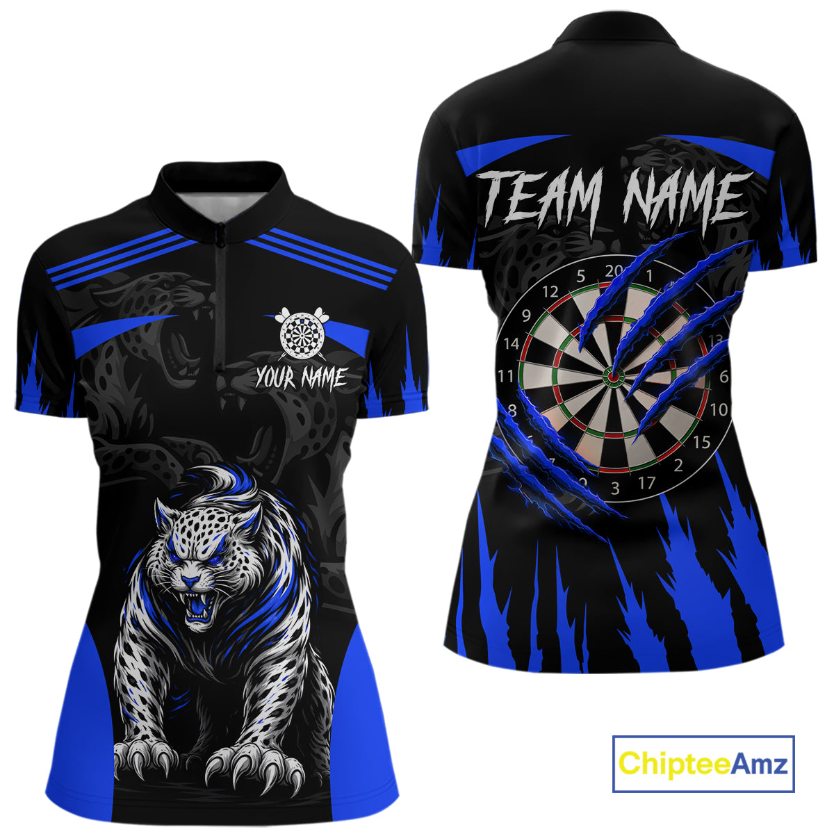 Black And Blue Custom Leopard Darts Shirt For Women, Darts Team Jersey Polo & Quarter Zip TDM5626