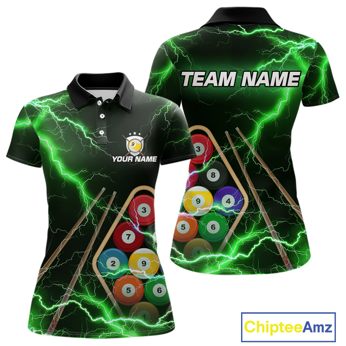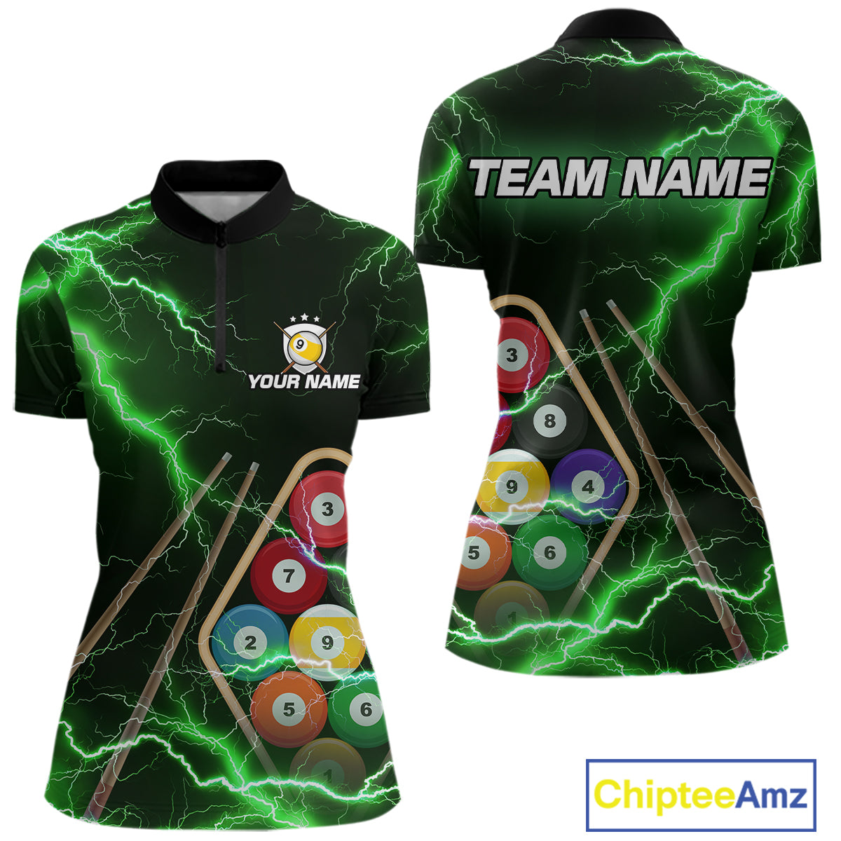 Green 9 Ball Thunder Lightning Billiard Shirts For Women Custom 9 Ball Pool Team Jersey Polo, 1/4 Zip TDM5634