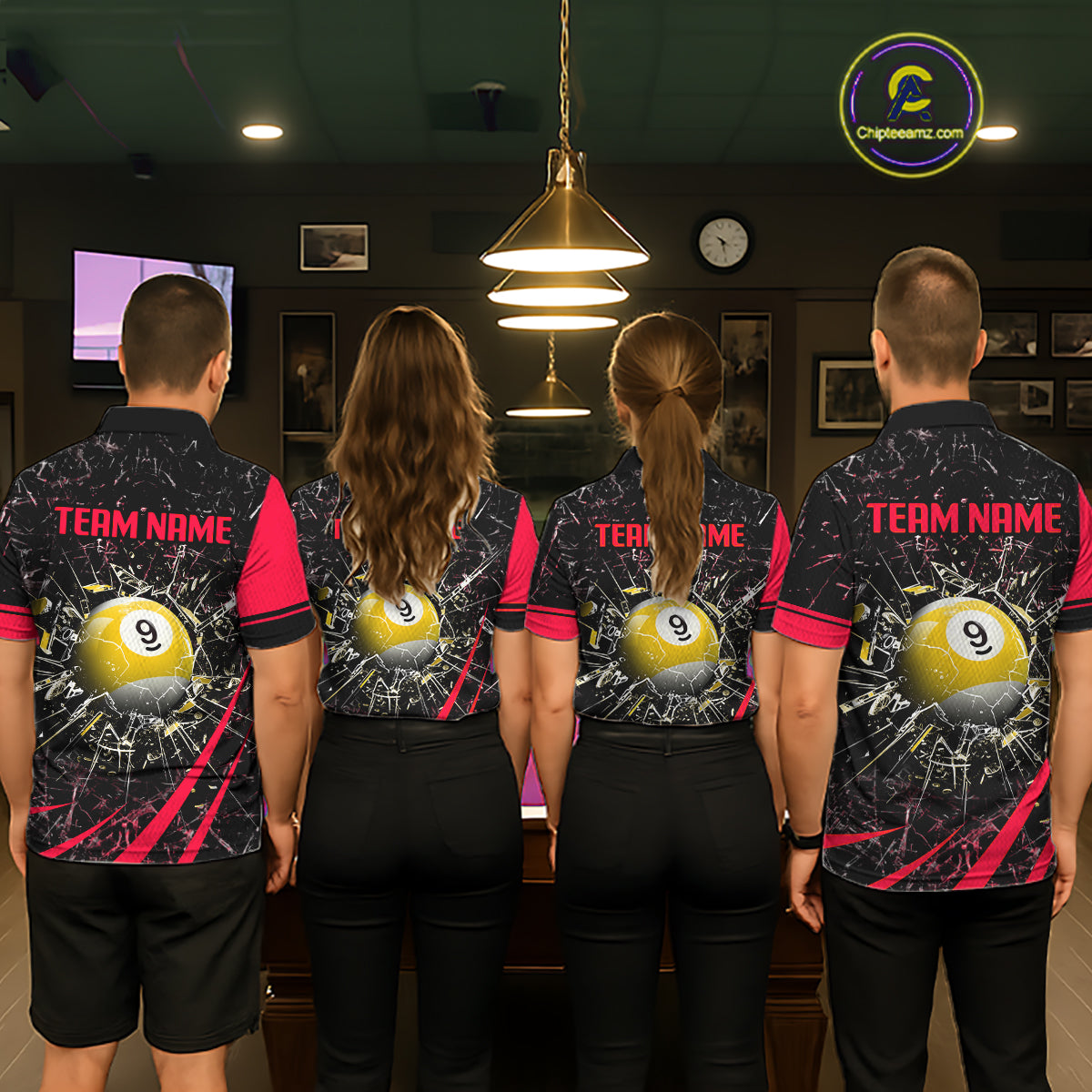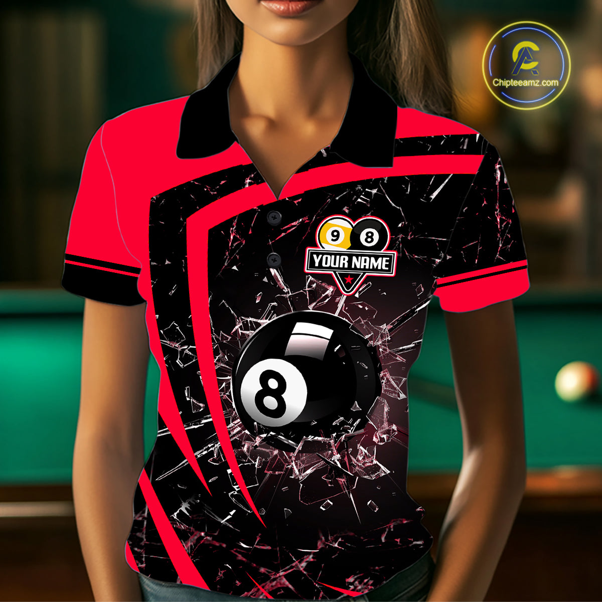 Black And Red 8 Ball & 9 Ball Glass Break Billiard Shirt For Women Custom Pool Team Jersey Uniform TDM5642