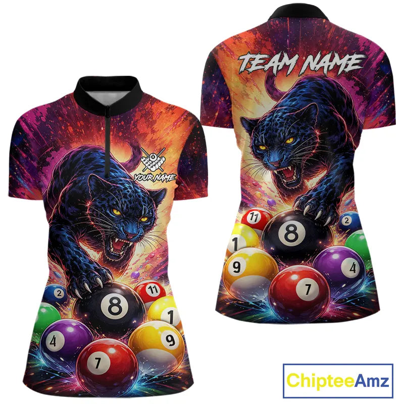 Colorful Billiard Balls Panther 8 Ball Pool Shirt For Women Custom Billiard Jersey Polo & 1/4 Zip TDM5669