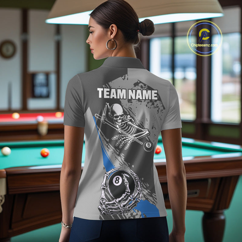 8 Ball Skeleton Custom Billiard Polo & 1/4 Zip For Women, Funny 8 Ball Pool Billiard Jersey|Blue TDM5677