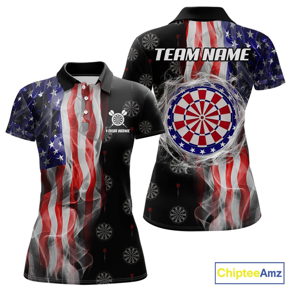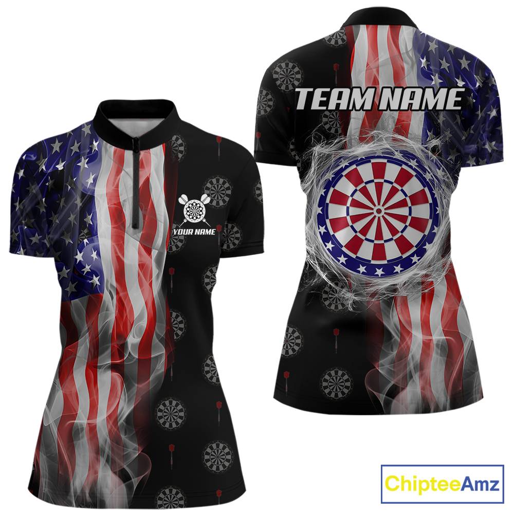 Personalized American Flag Smoke Darts Shirt For Women, Patriotic Darts Jersey Team Polo & 1/4 Zip TDM5680
