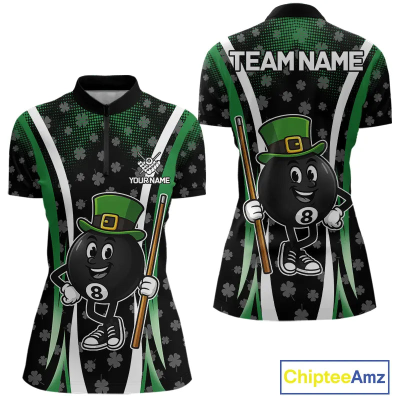 Funny 8 Ball Pool St Patrick Day Billiard Shirt For Women Custom Lucky Billiard Team Jersey TDM5699