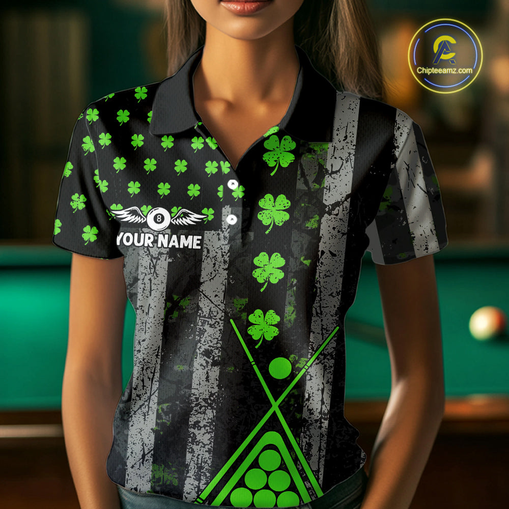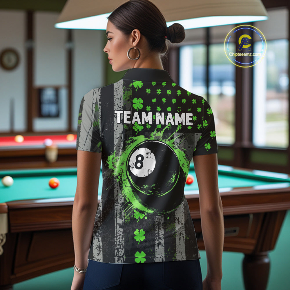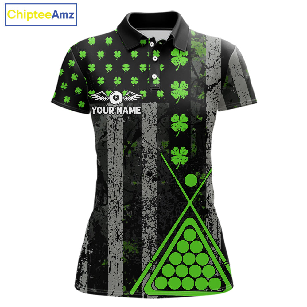 Green Grunge US Flag Luckiest Shamrock Billiard Shirt For Women Custom St Patrick Day Pool Jersey TDM5710