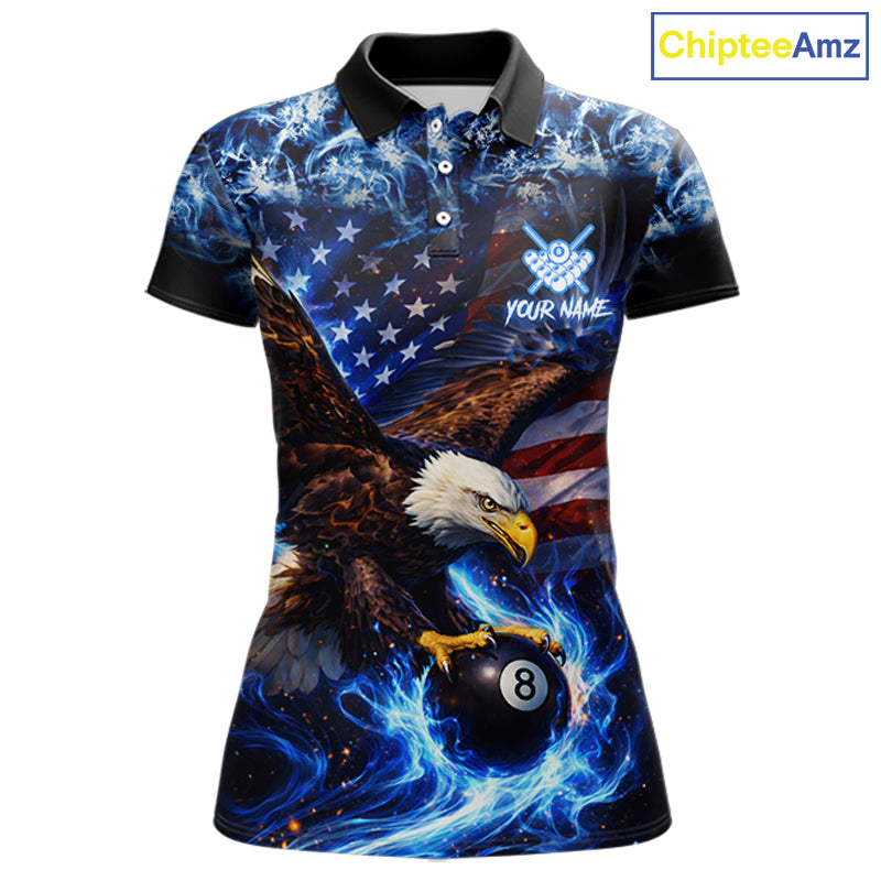 Blue Flaming Eagle 8 Ball Pool Billiard Shirt For Women Custom American Flag Billiard Team Jersey TDM5727