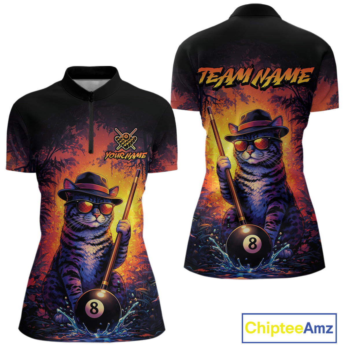 Personalized Vintage Funny Cat 8 Ball Billiard Shirt For Women, Pool Team Jersey Polo & 1/4 Zip TDM5751