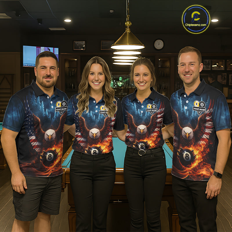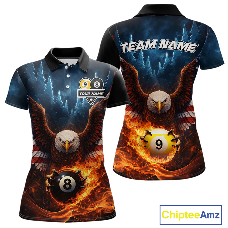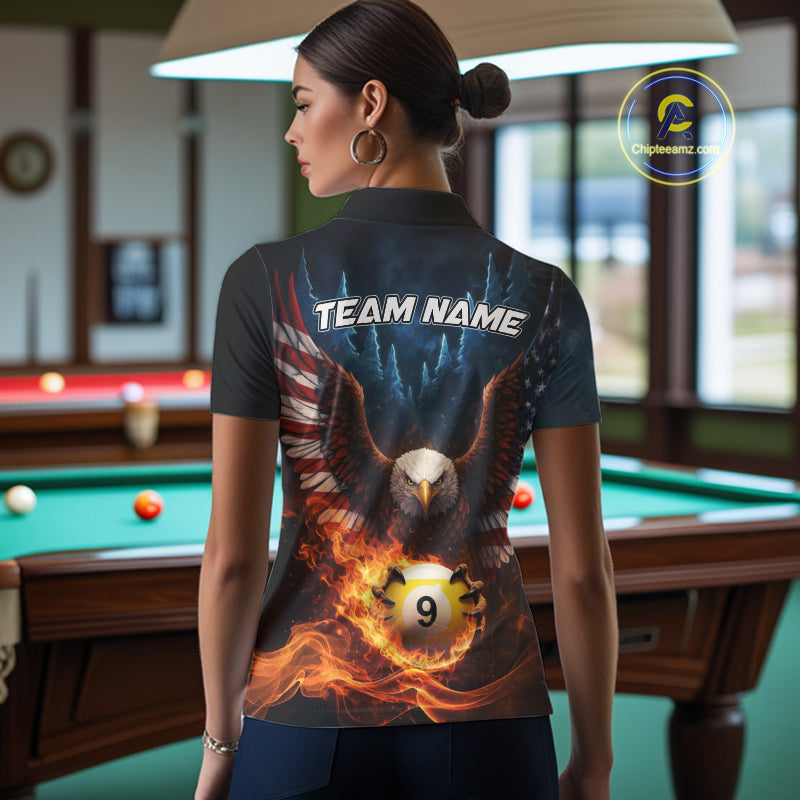American Flag Eagle 8 Ball & 9 Ball Flame Billiard Shirt For Women Custom Patriotic Billiard Jersey TDM5755