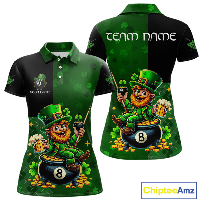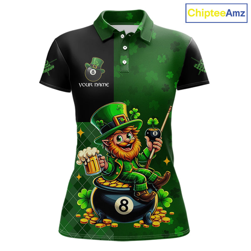 Custom St Patrick Day Leprechaun 8 Ball Billiard Shirt For Women, Shamrock Luckiest Pool Team Jersey TDM5768
