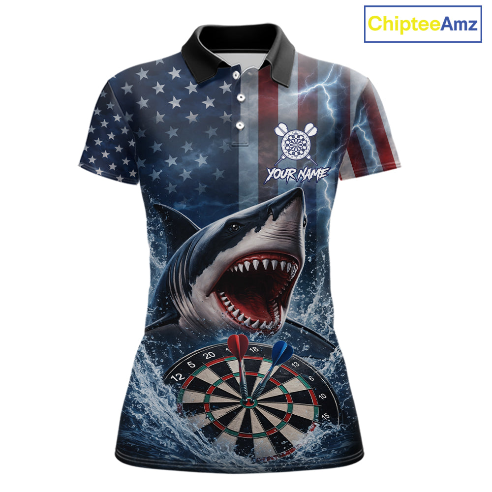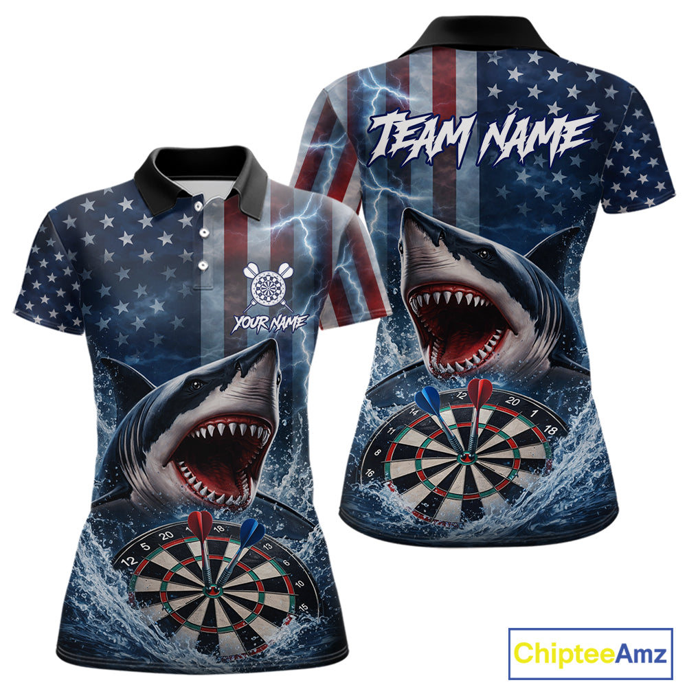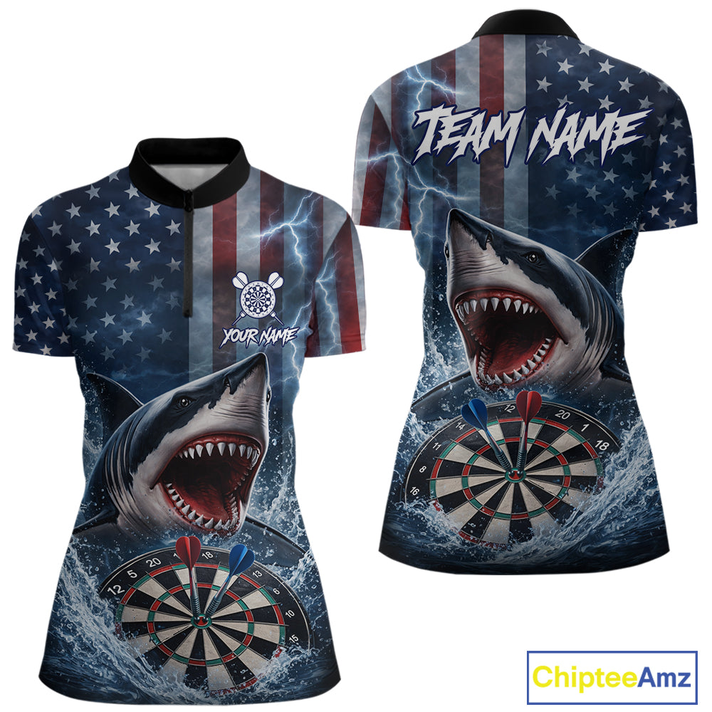 American Flag Shark Darts Shirt For Women Custom Lightning Patriotic Dart Jersey Team Polo & 1/4 Zip TDM5771