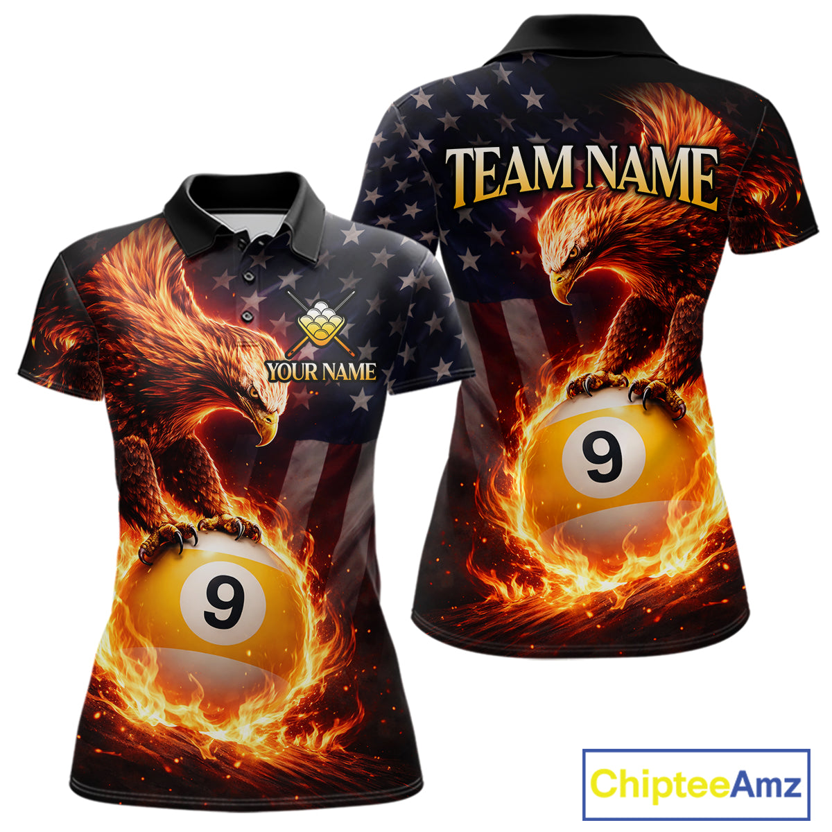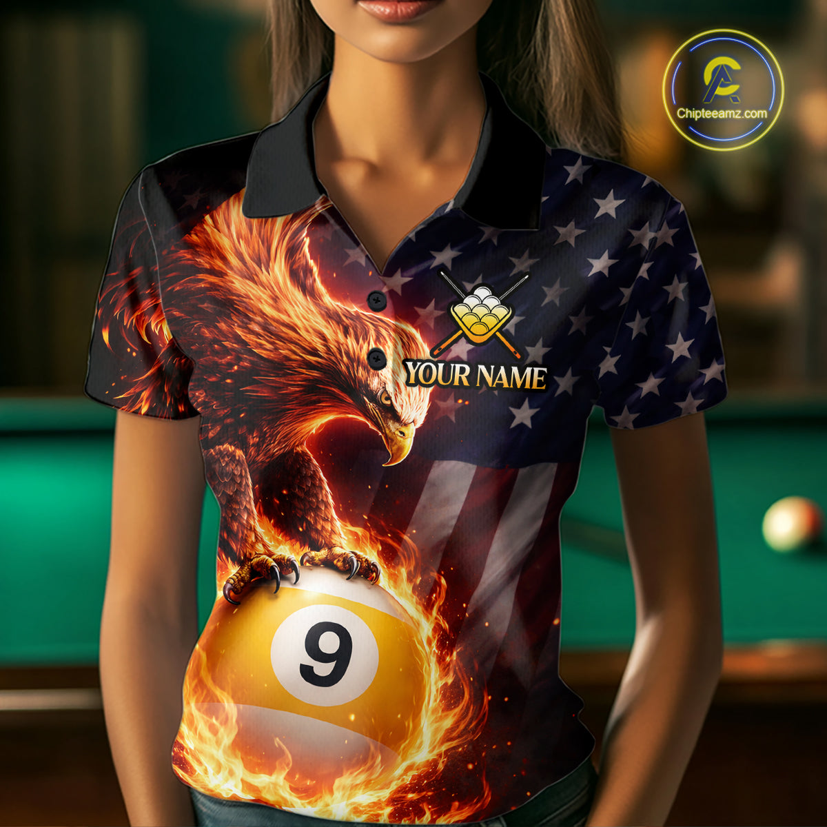 American Flag Flame 9 Ball Eagle Billiard Shirt For Women Custom Pool Team Shirt, Billiard Jersey TDM5788