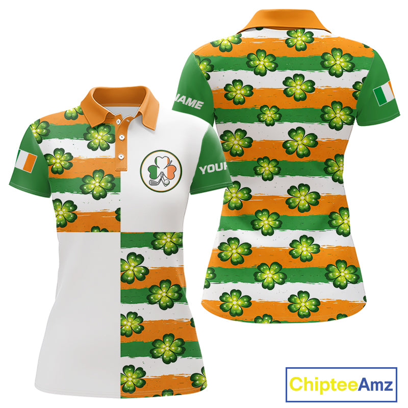 Womens Golf Polo Shirts Custom Ireland Flag St Patricks Day Green Clovers Golf Tops For Ladies NHN0140