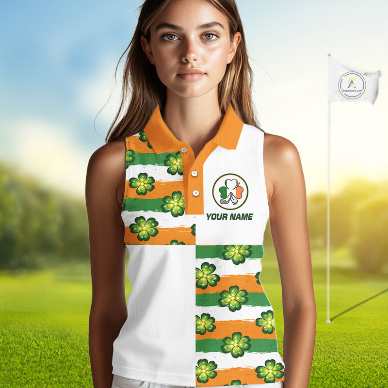 Womens Sleeveless Golf Polo Shirt Custom Ireland Flag St Patricks Day Green Clovers Golf Tops NHN0140