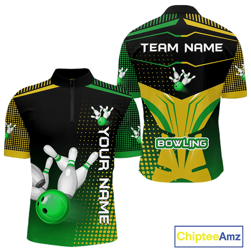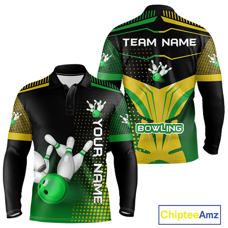 Yellow and Green pattern Bowling shirts For Men Custom Team Bowling Jerseys, Gift For Bowler NQS11244