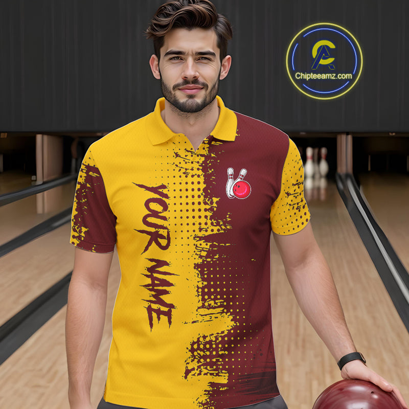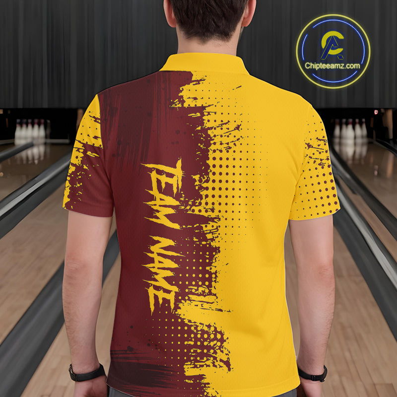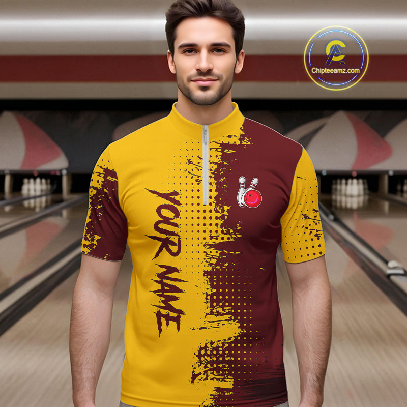 Yellow and Red Bowling Polo, Quarter Zip shirts for Men Custom Bowling Team Jerseys NQS10882