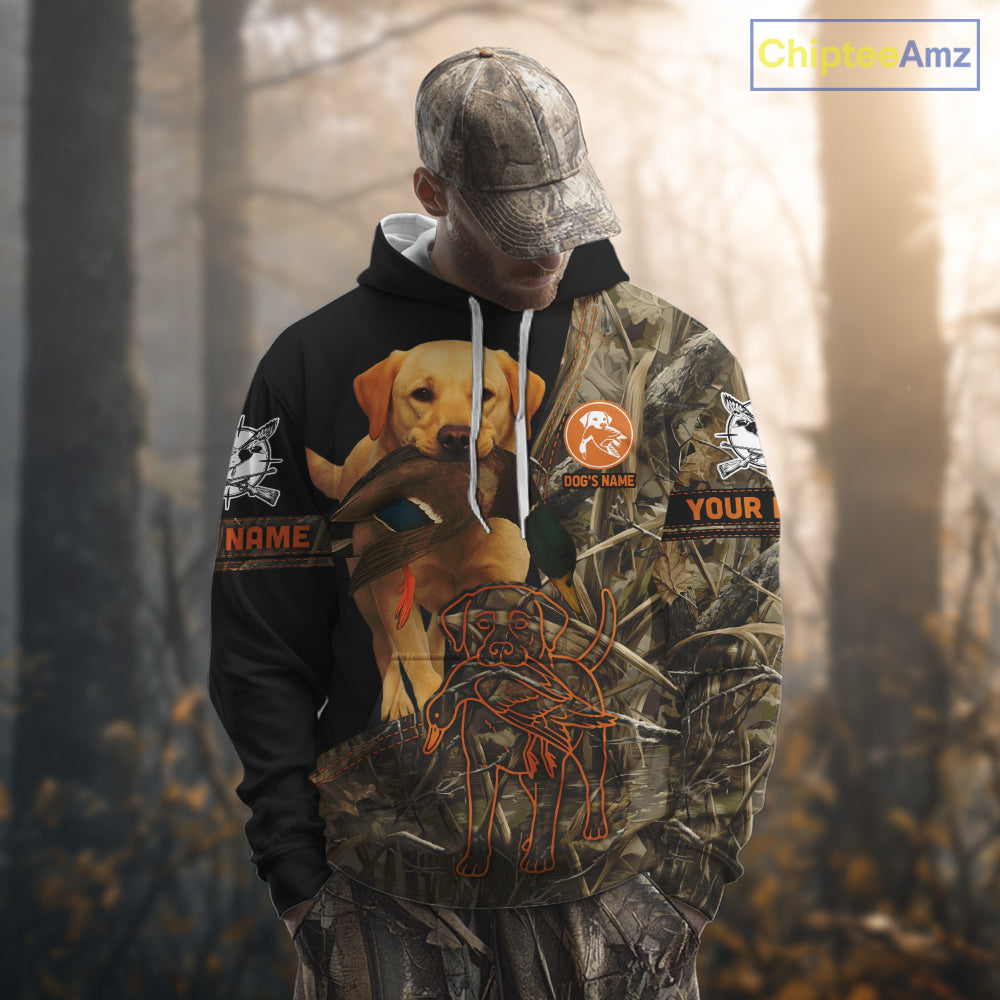 Yellow Lab Hunting Dog Customized Name All Over Print Shirts For Hunters, Duck Hunting Shirt NHT276